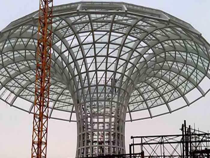 二、球形网架结构因其结构新颖,受力合理,自重轻、用钢量低等优点。如大型体育场馆球形乌兰察布螺栓球网架、公共场馆球形网架、电厂乌兰察布螺栓球网架、水泥工业球形网架、仓储物流球形网架、乌兰察布干煤棚工业球形网架、乌兰察布收费站乌兰察布加油站球形网架、展览中心、影剧院、商场、航站楼、候车厅、工厂乌兰察布车间、仓库、电视塔等球形螺栓球节点网架。国内球形网架结构主要分为:乌兰察布焊接球节点网架及螺栓球节点网架两种。螺栓球节点网架其构件工厂内加工量较大,现场安装便捷,适用于现场工期紧,乌兰察布施工条件、用电量受制约,网架形状复杂、乌兰察布杆件定位困难的异形结构。螺栓球节点球形网架系统基本由乌兰察布杆件、螺栓球、支撑支座等组成。按照节点形式可分为交叉乌兰察布桁架体系、四角锥体系、三角锥体系等。支撑方式多为固定支座支撑。对于大面积、大跨度及有特殊受力或伸缩要求的网架结构可采用橡胶支座、滑移支座、球铰支座等支撑形式,以满足结构自身的受力稳定、均衡,便于内力释放等设计要求。